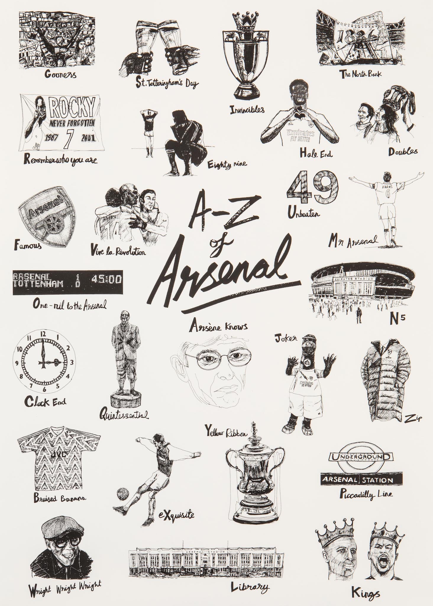 The A–Z of Arsenal is a unique art print celebrating the club we love — through 26 iconic moments, people, players and places.