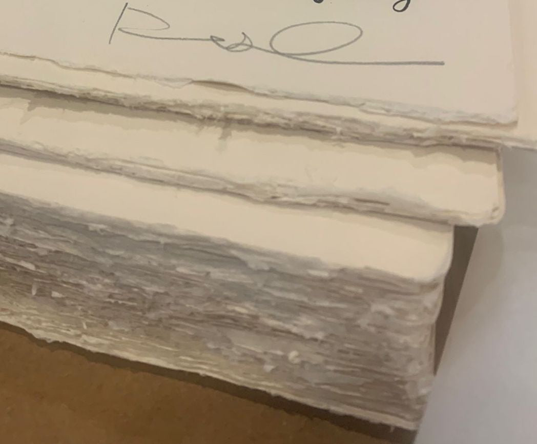 The Gosman's blue Edition is a limited edition of 200 prints. Each poster is screen-printed by hand at large scale (28" x 20") in blue ink onto creamy Fabriano paper with a deckled edge.